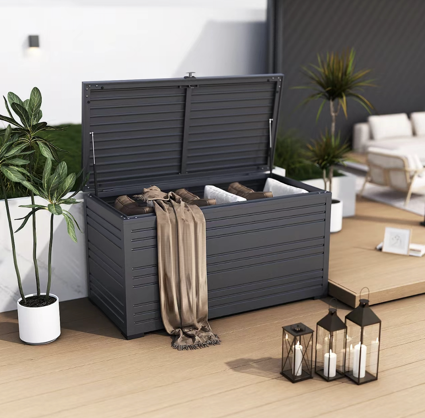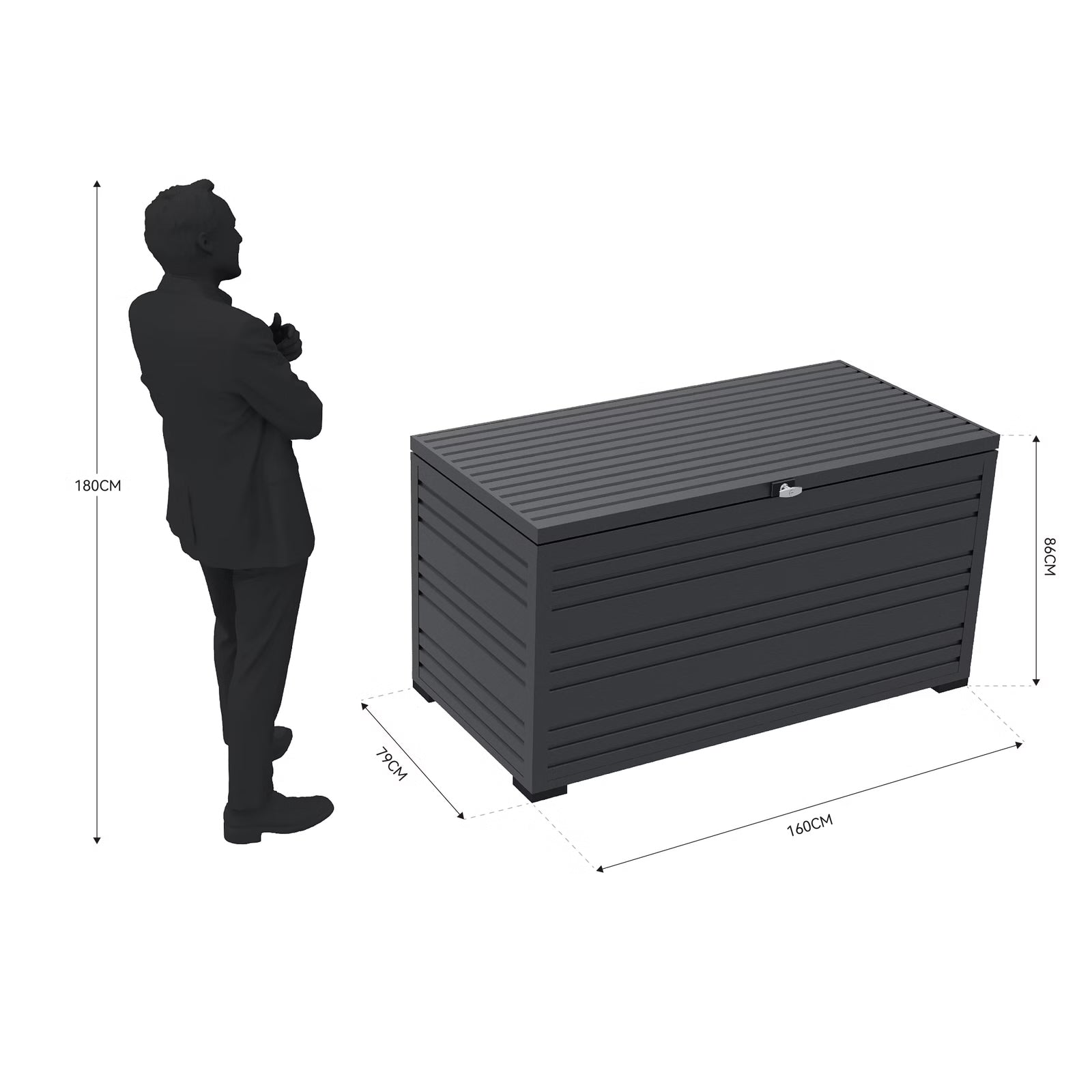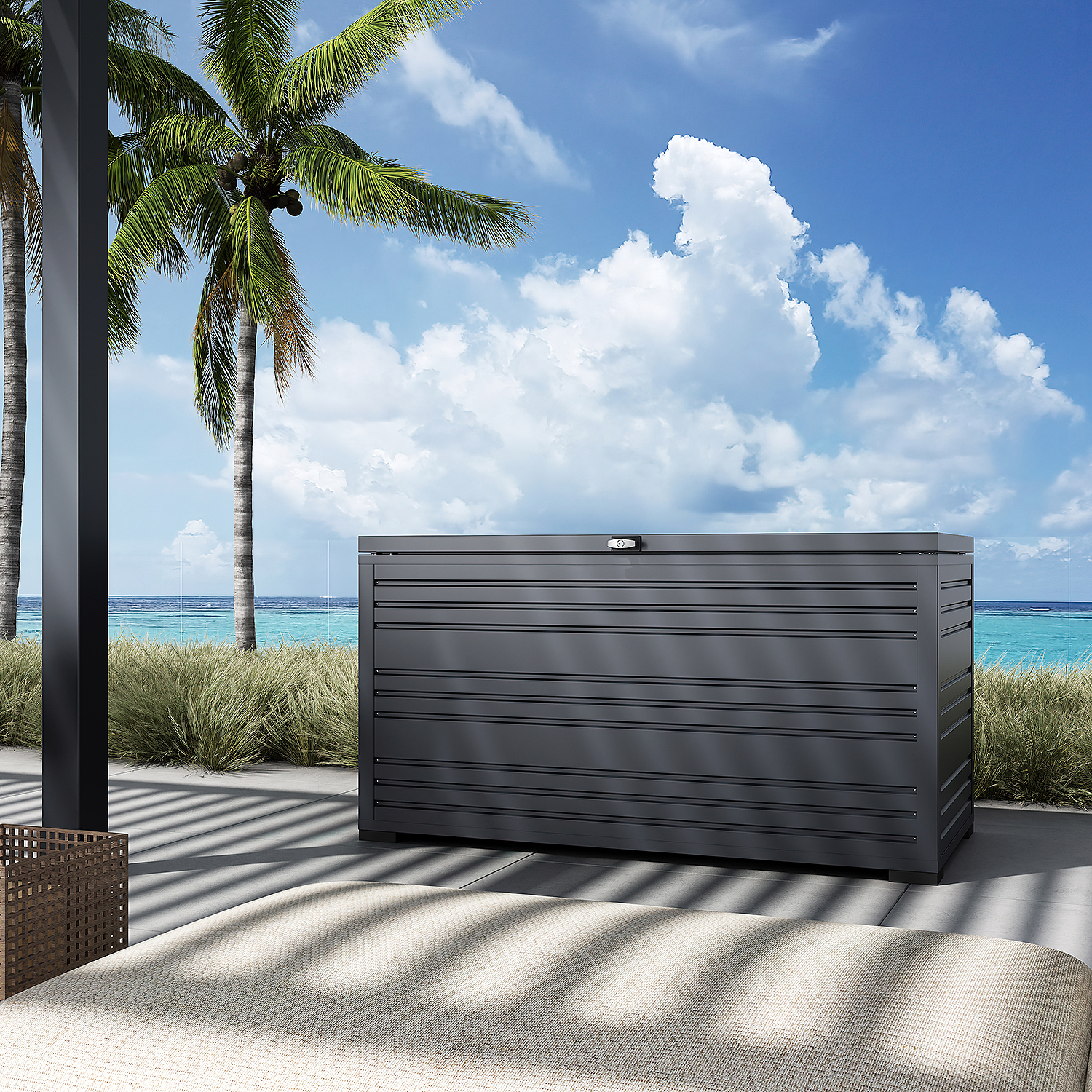 Laadukas säilytyslaatikko tarjoaa sinulle 1015 litran tilavuudella tilaa puutarhavälineiden tai muiden tarvikkeiden turvalliseen säilytykseen. Tukevan alumiinirakenteen ja jauhemaalauksen ansiosta laatikko on erityisen kestävä ja tarjoaa suojan eri sääolosuhteita vastaan.