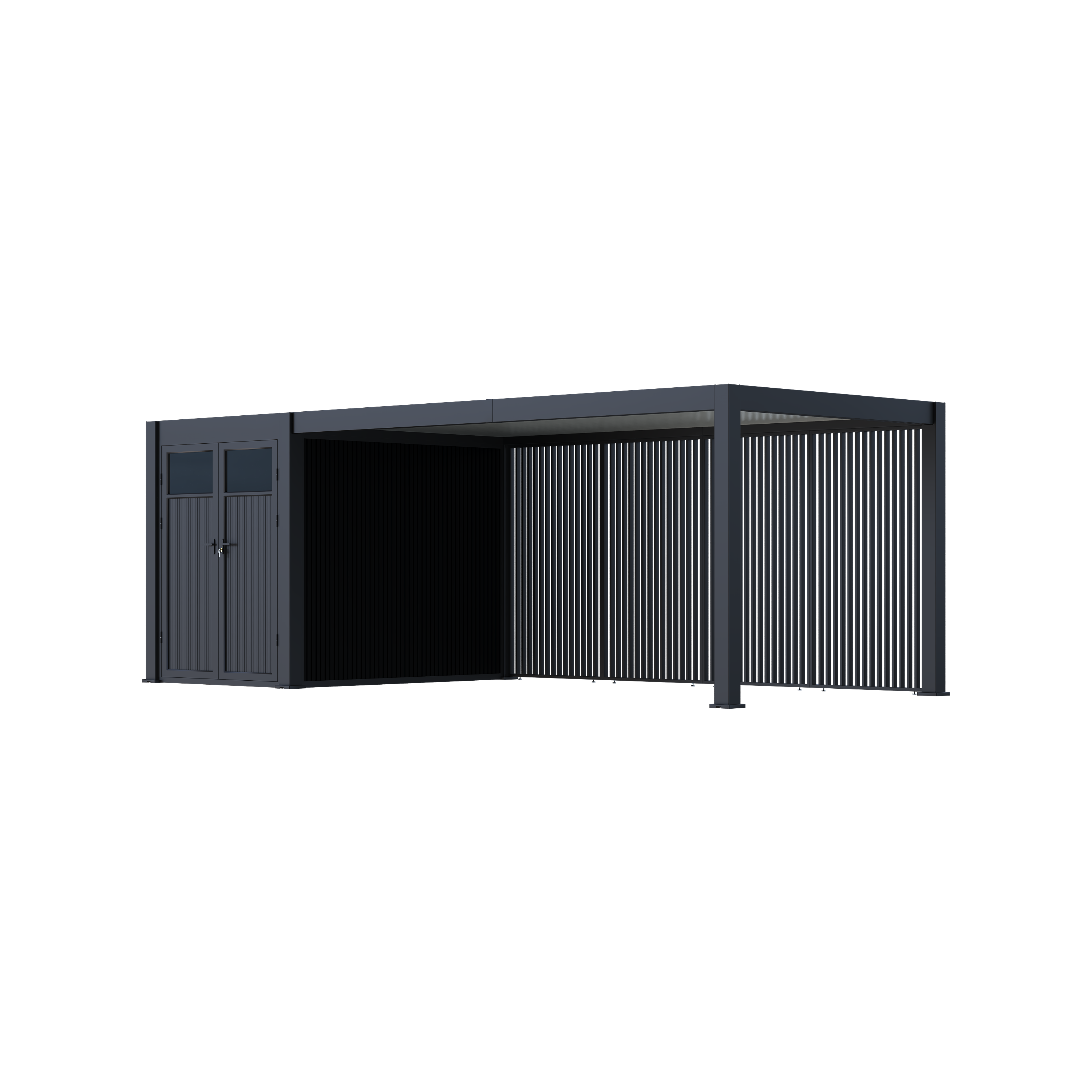 Mitä tahansa säleseinää voidaan käyttää. Jos haluat sulkea pergolan 3 metrin puolen, tarvitset sen sulkemiseen 3 kertaa 0,93 metriä.