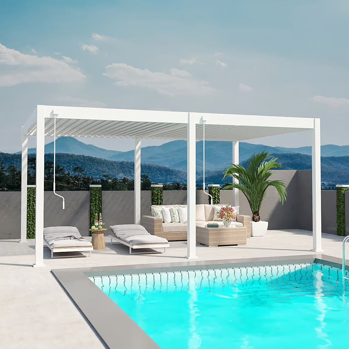 Luo ulkotilastasi viihtyisä keidas säädettävällä COTE Deluxe -alumiinipergolalla. Moderni muotoilu yhdistyy käytännöllisiin ominaisuuksiin, tarjoten sekä suojaa että tyylikkyyttä ympäri vuoden.
