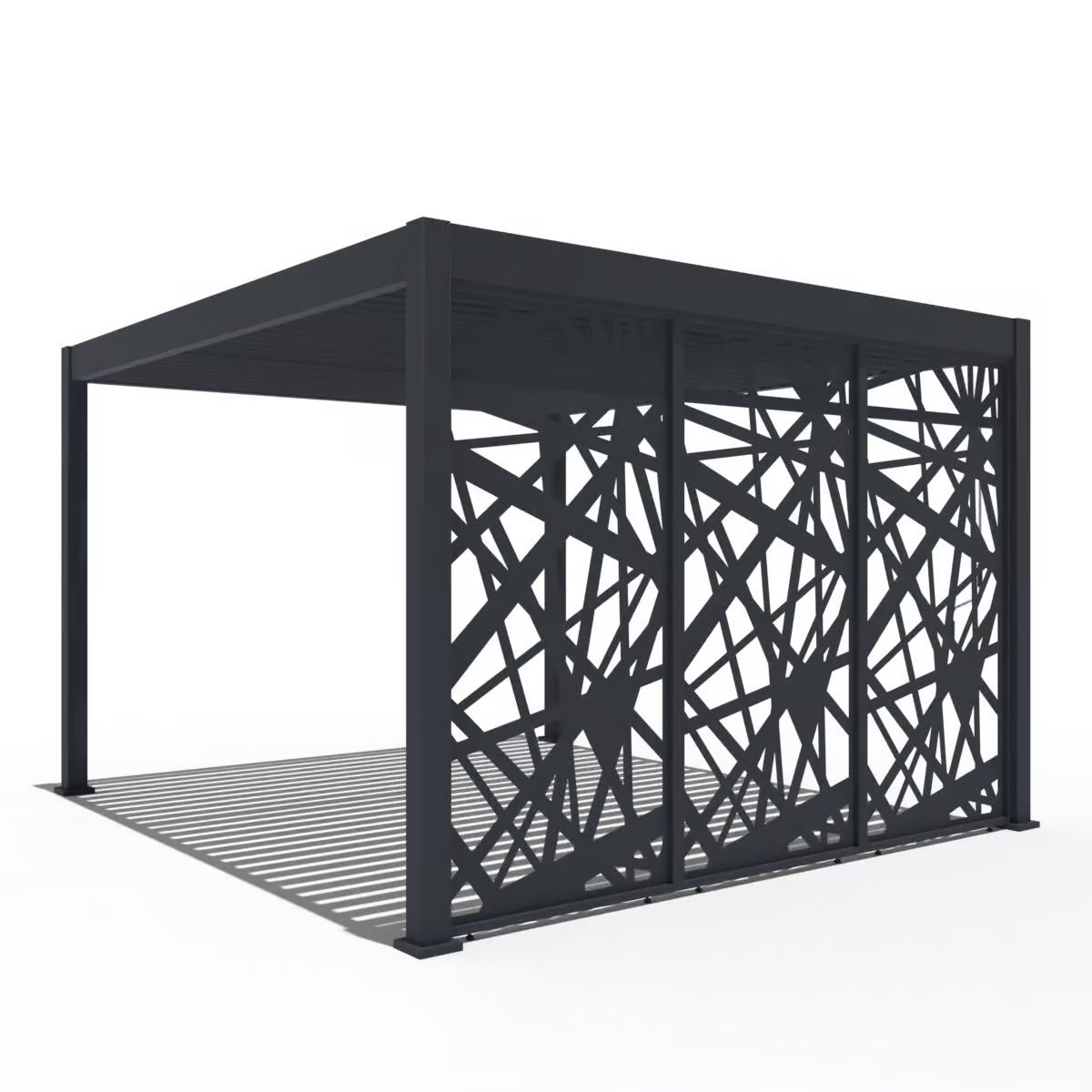 Cote koristeseinässä on viehättävä abstrakti muotoilu, yhdistää esteettisen eleganssin käytännölliseen toimivuuteen, tarjoten suojaa auringolta, tuulelta ja uteliailta katseilta. Laadukkaasta alumiinista valmistetut paneelit ovat säänkestäviä, kestäviä ja tyylikkäitä, täydentäen pergolasi ilmettä modernilla tavalla.