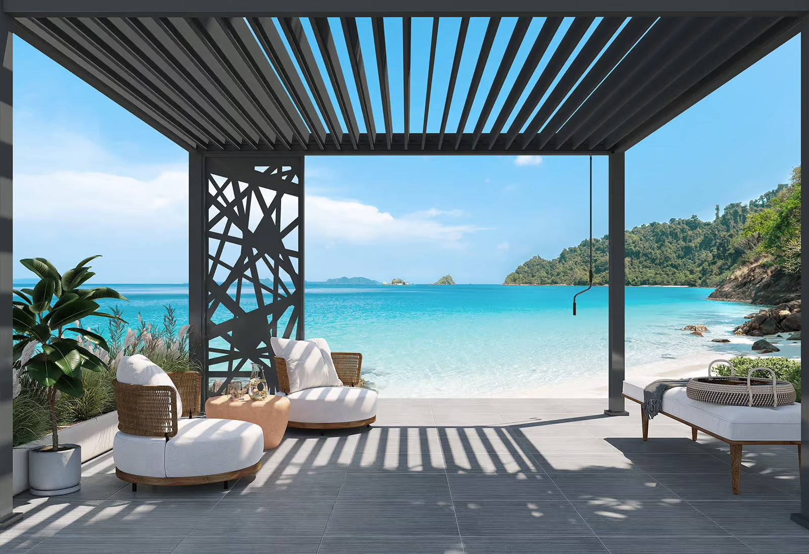 Cote-lamelliseinä tekee pergolastasi suojaisamman ja viihtyisämmän, samalla viimeistellen sen tyylikkäästi.