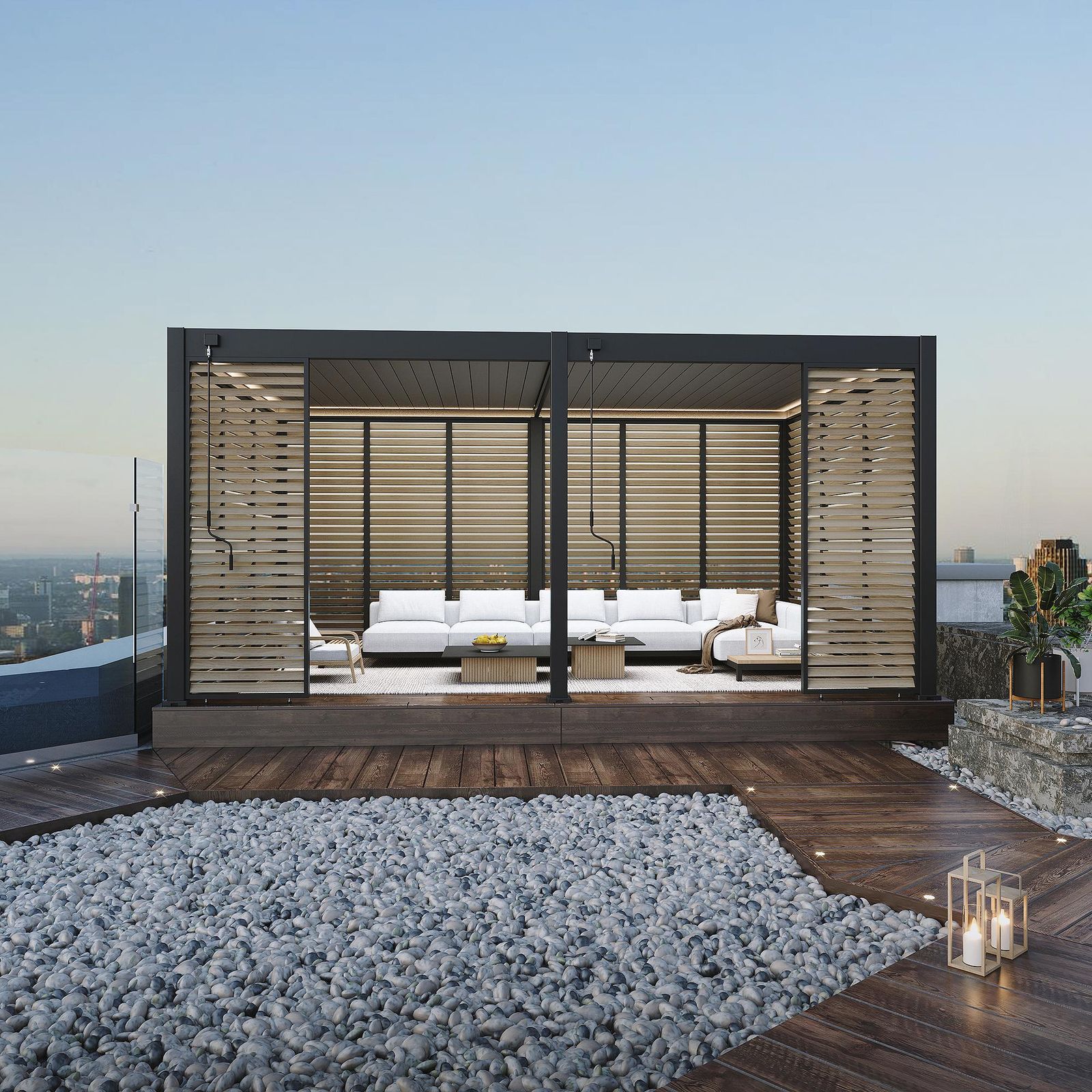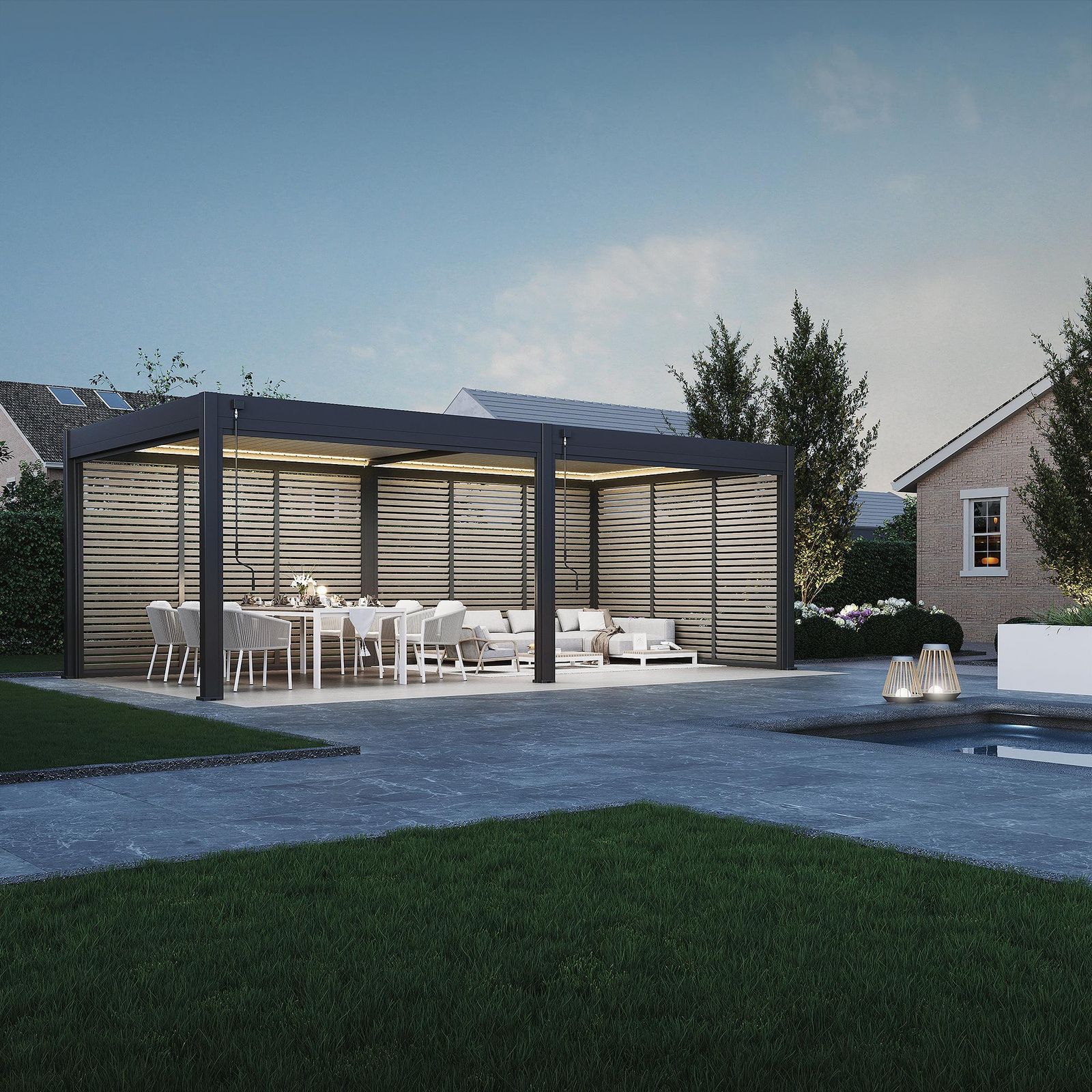 ✔ Monipuolinen sijoittelu – voidaan asentaa pergolan yhdelle tai useammalle sivulle tarpeen mukaan.